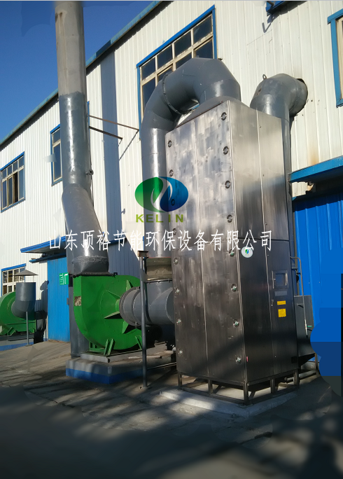 三、恶臭气体利用排风设备输入到本净化设备后,净化设备运用高能UV紫外线光束及臭氧对恶臭气体进行协同分解氧化反应,使恶臭气体物质其降解转化成低分子化合物、水和二氧化碳,再通过排风管道排出室外。
